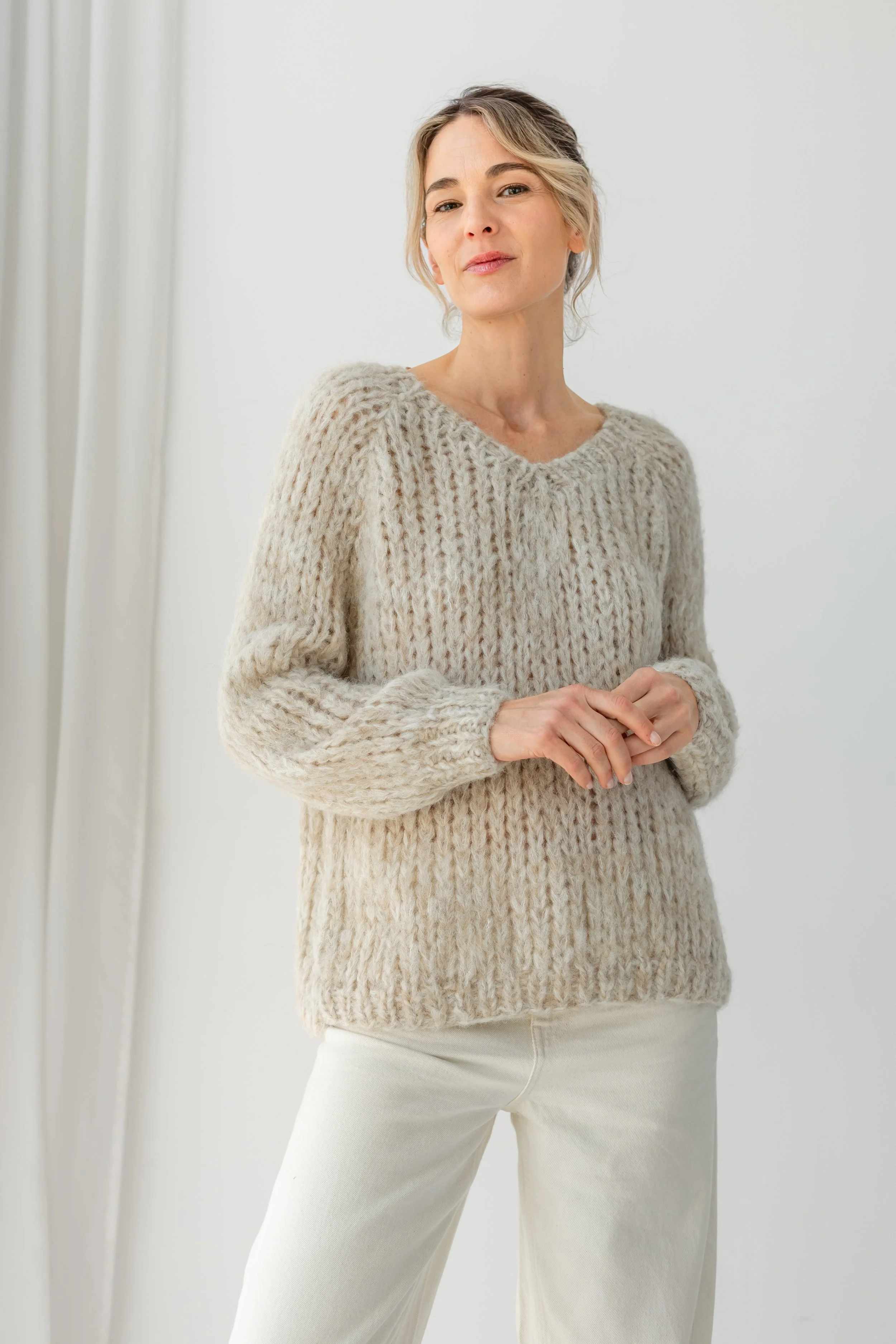 Our ALPAQUITA SWEATER features a beautiful intarsia work, perfect for that chic après-ski look or for a cozy stroll in the city. Hand knitted in two threads this sweater will make heads turn!